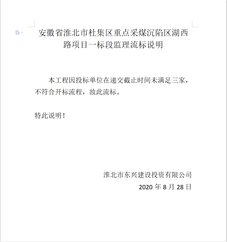 安徽省淮北市杜集區(qū)重點采煤沉陷區(qū)湖西路項目一標段監(jiān)理投標邀請(招標公告)